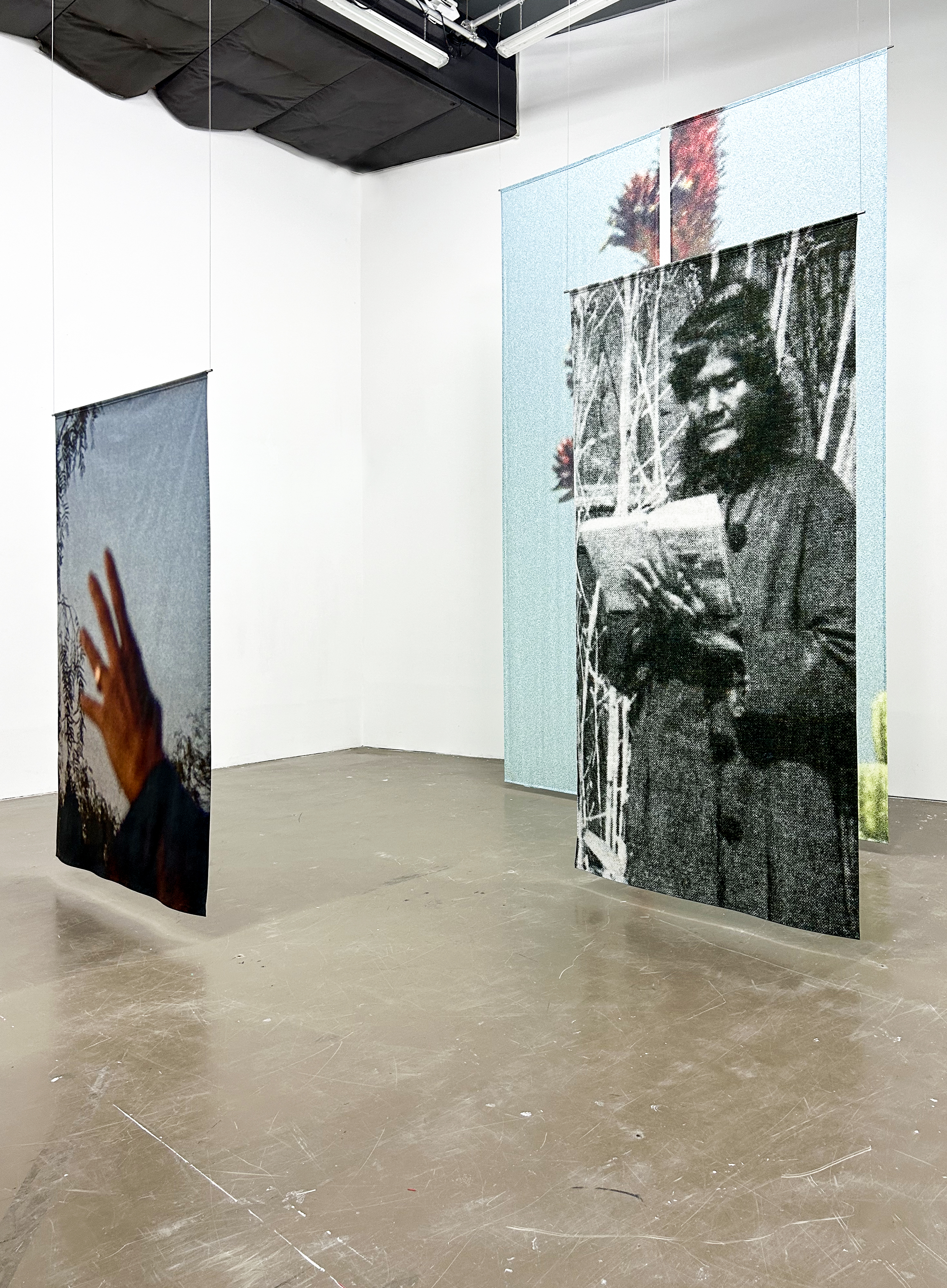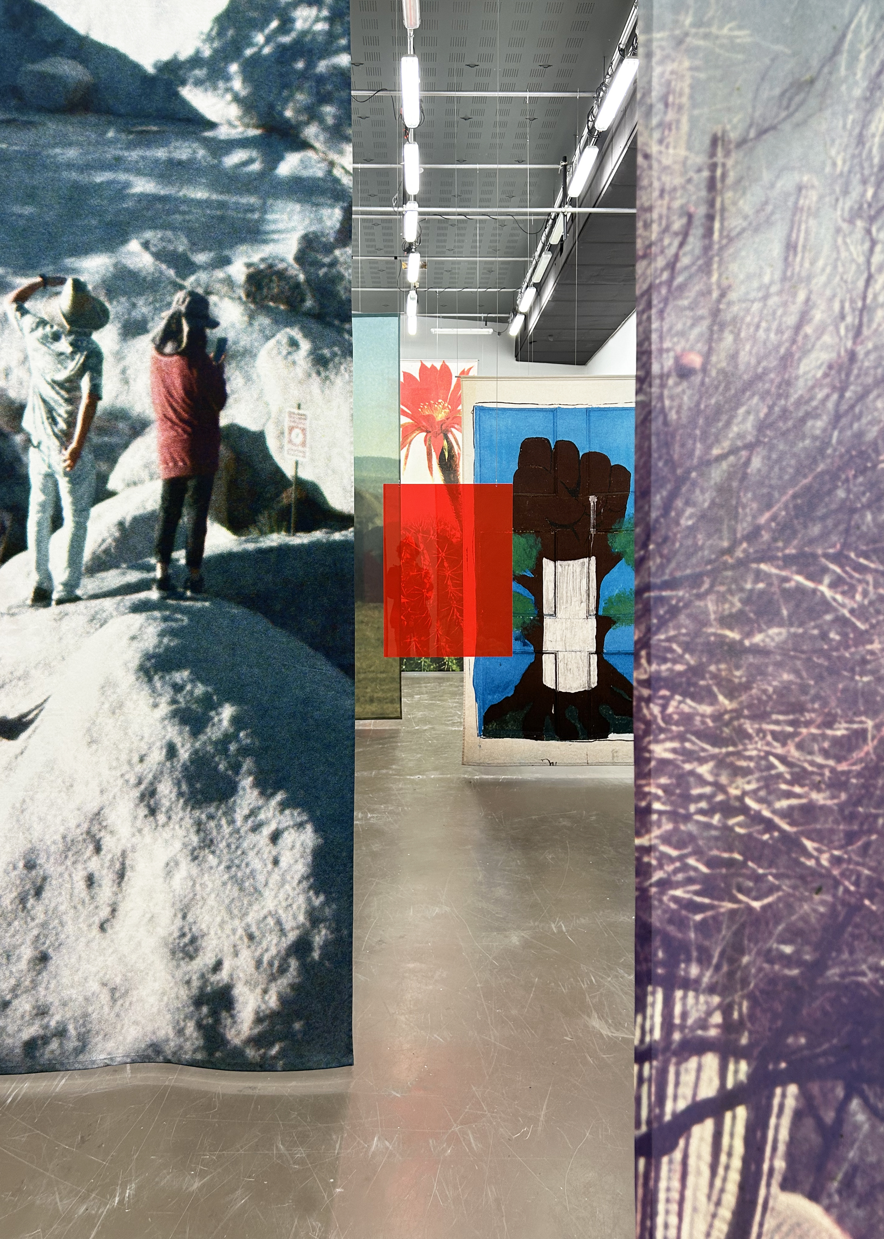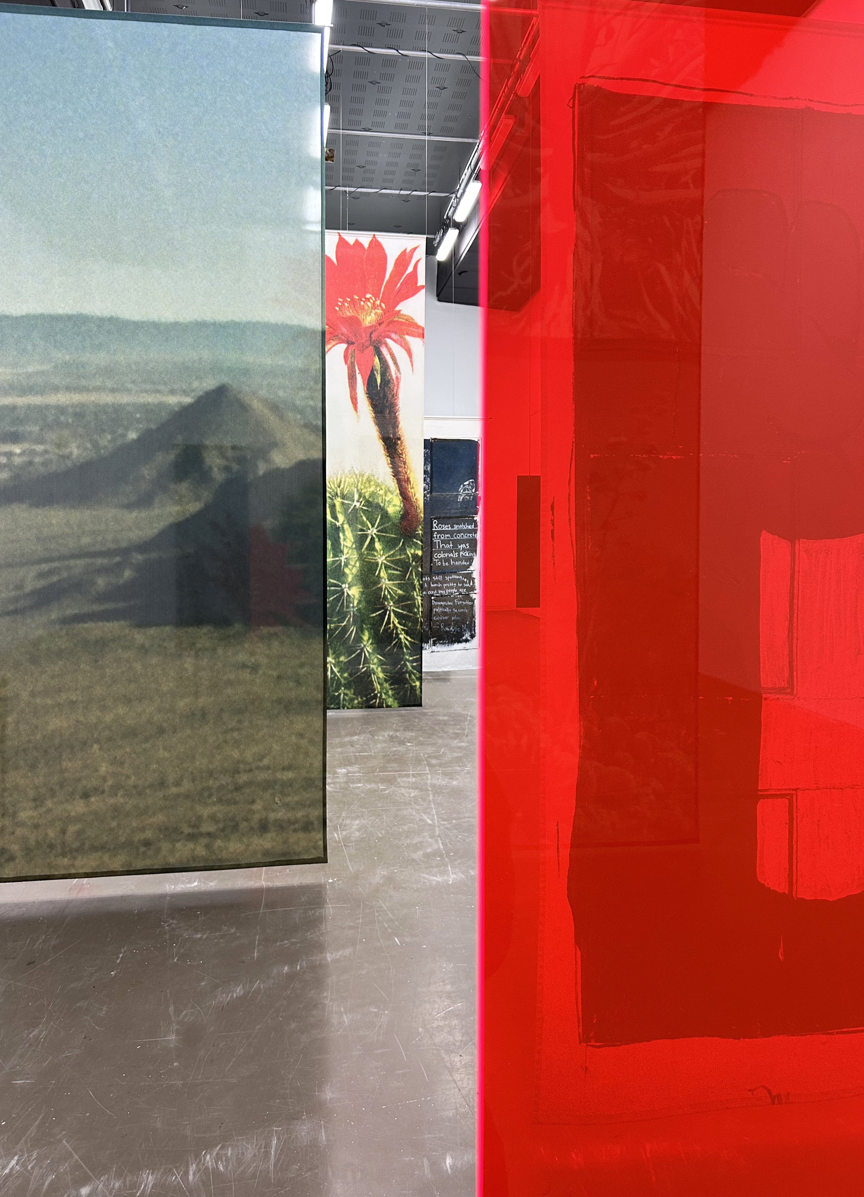 L’atelier est un territoire de construction des formes, l’antre intime d’un processus de création qui se meut, glisse et progresse dans le temps dilaté de la recherche. L’exposition, quant à elle, se déploie à contretemps, tel un instantané aux images pétrifiées, proposées aux regards et aux appréciations. Où se situerait l’entre-temps de ces deux vitesses ? Comment peuvent-elles glisser l’une dans l’autre, s’embrasser ? Imaginons une table d’atelier — dissimulée sous des images — basculée et projetée dans l’espace d’exposition.