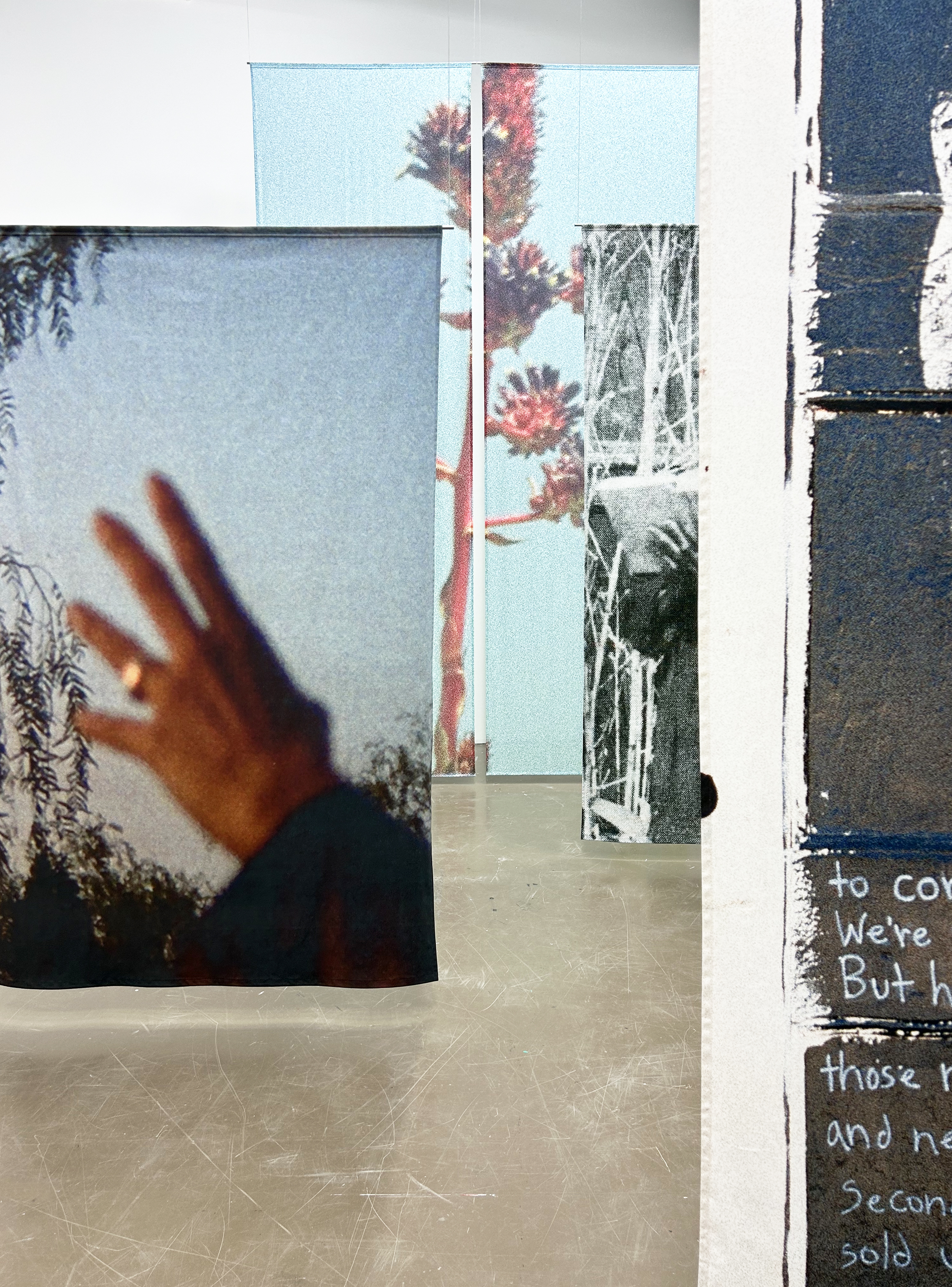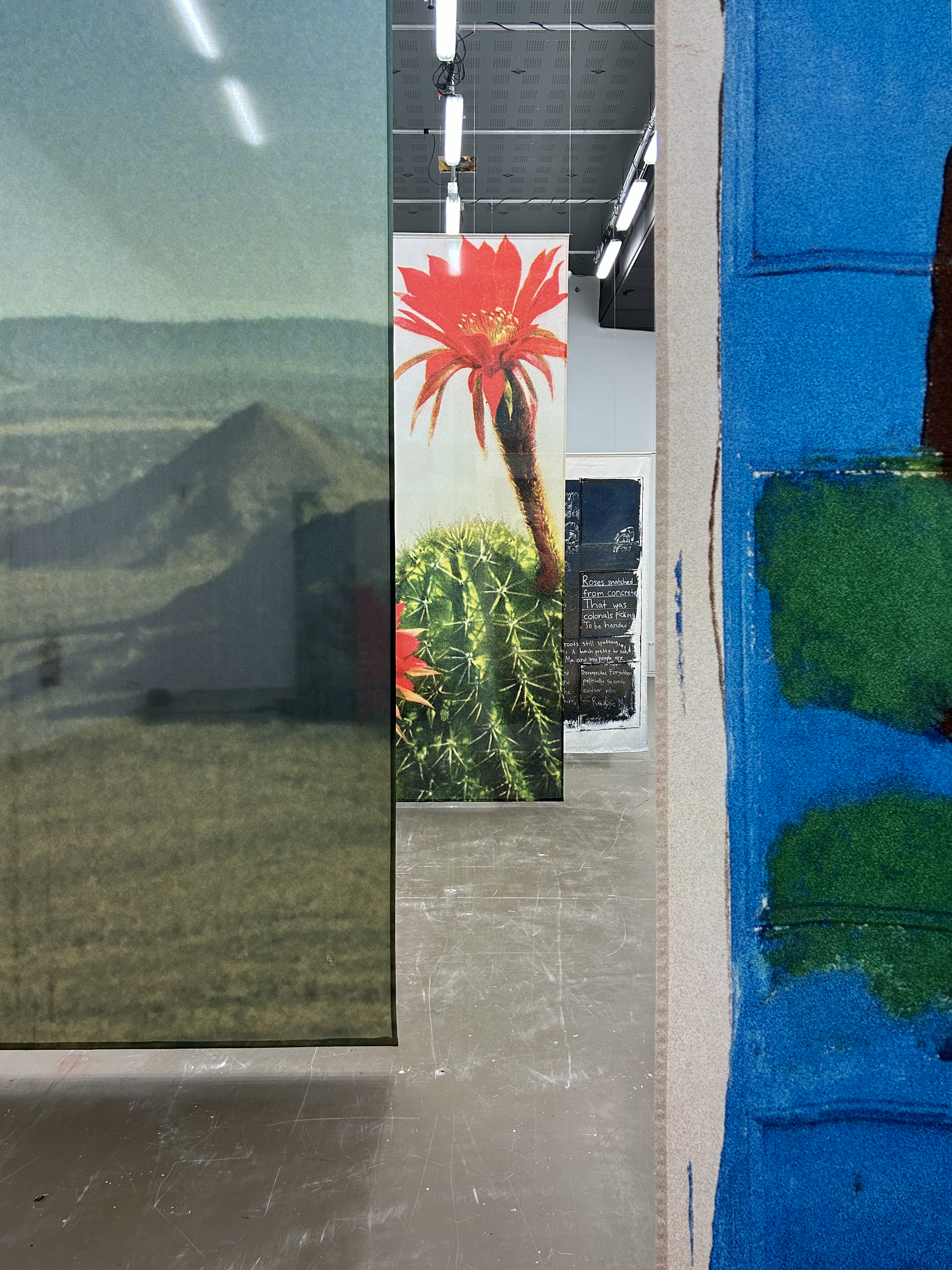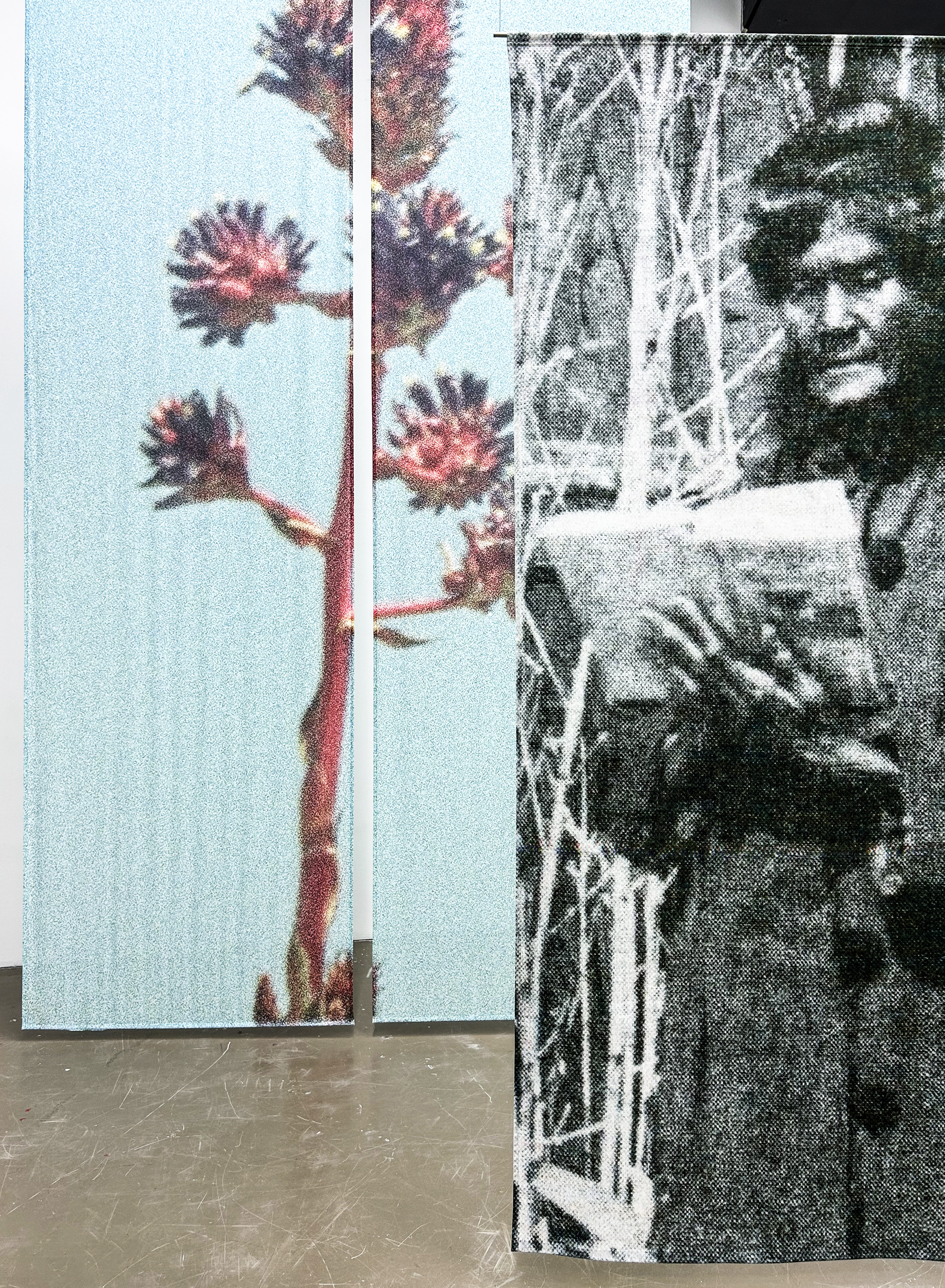 L’atelier est un territoire de construction des formes, l’antre intime d’un processus de création qui se meut, glisse et progresse dans le temps dilaté de la recherche. L’exposition, quant à elle, se déploie à contretemps, tel un instantané aux images pétrifiées, proposées aux regards et aux appréciations. Où se situerait l’entre-temps de ces deux vitesses ? Comment peuvent-elles glisser l’une dans l’autre, s’embrasser ? Imaginons une table d’atelier — dissimulée sous des images — basculée et projetée dans l’espace d’exposition.